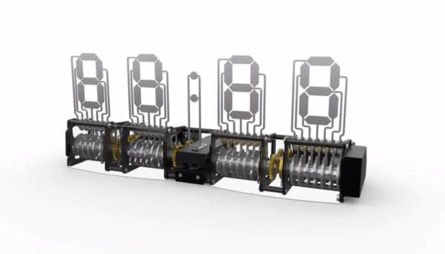 機械的な歯車の動きはアナログを感じさせるにもかかわらず、表示されるセグメントは