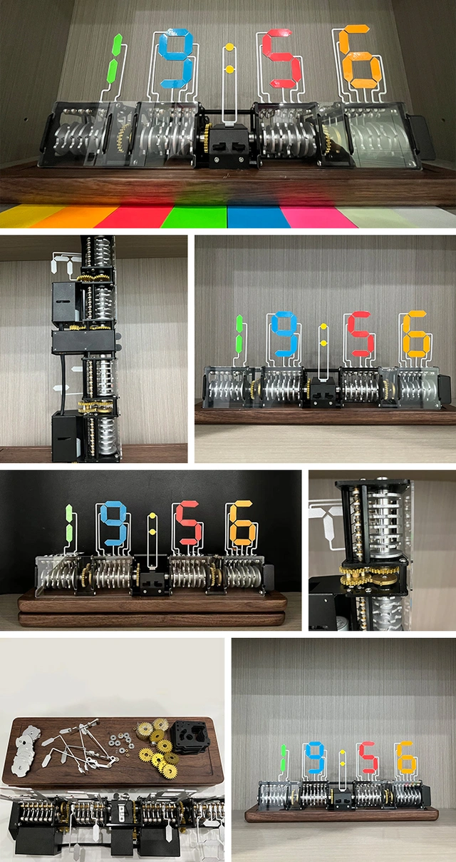 数字をかたどるセグメントは7つのパーツによる構成。モーターを利用してカムが稼働し、パーツが立ち上がります。