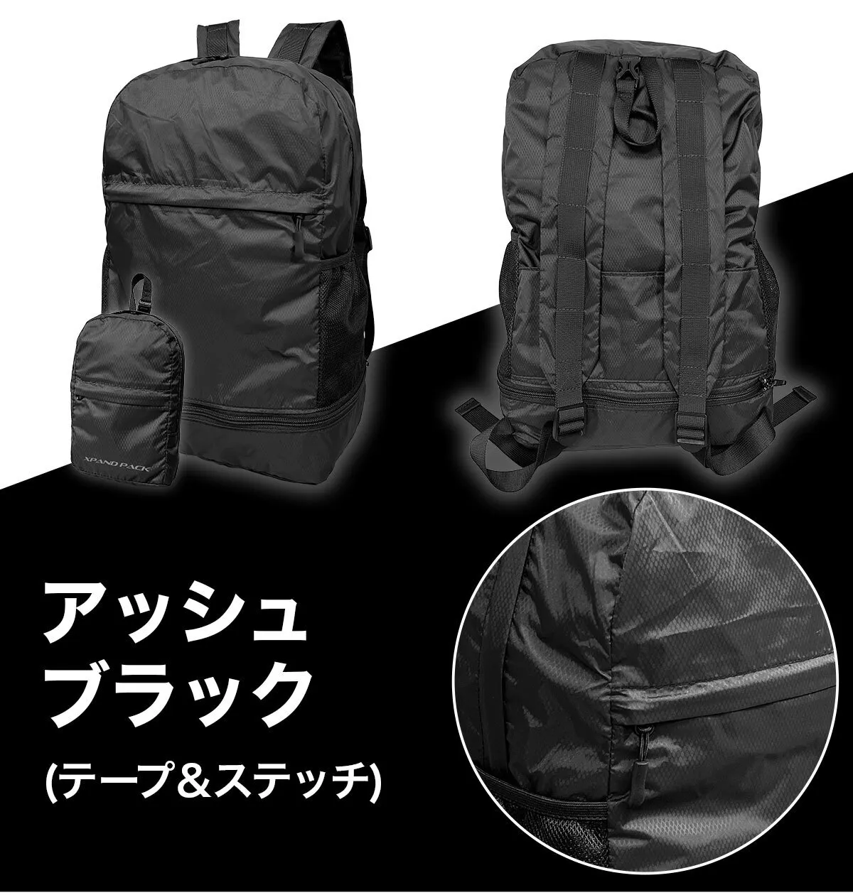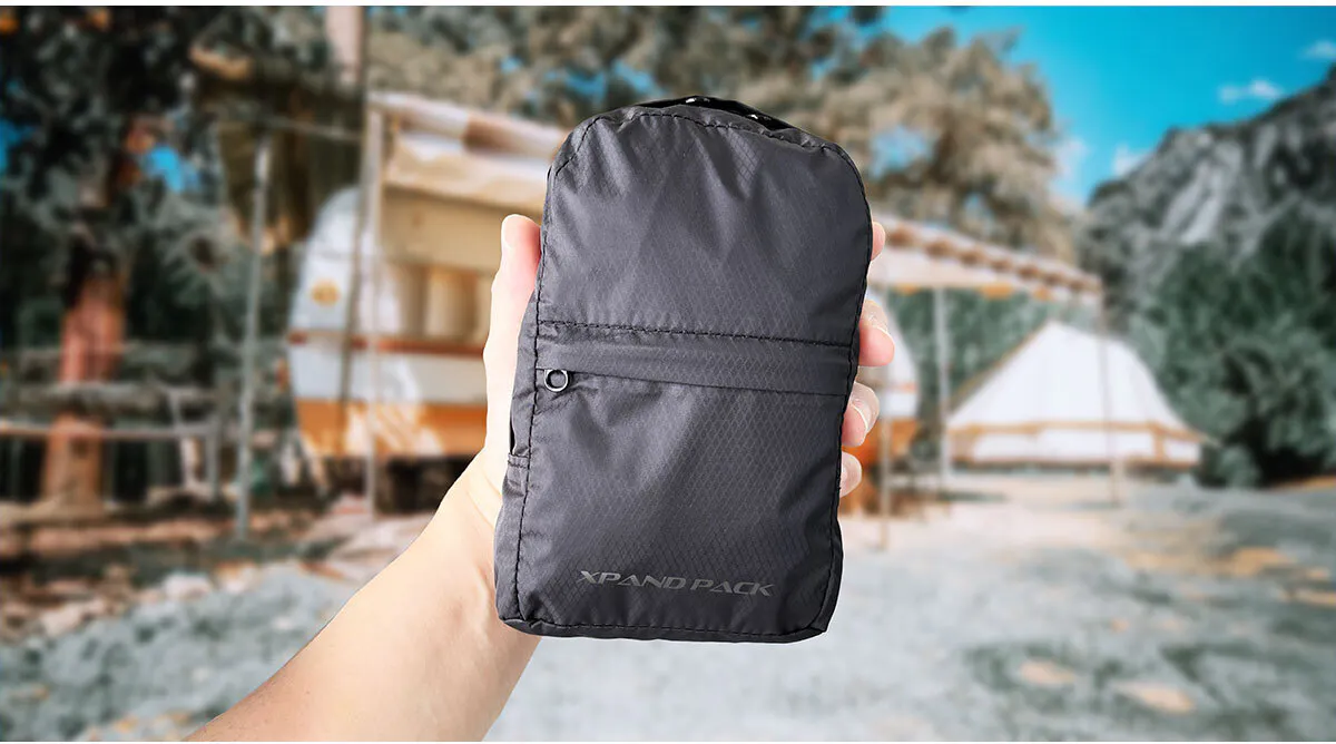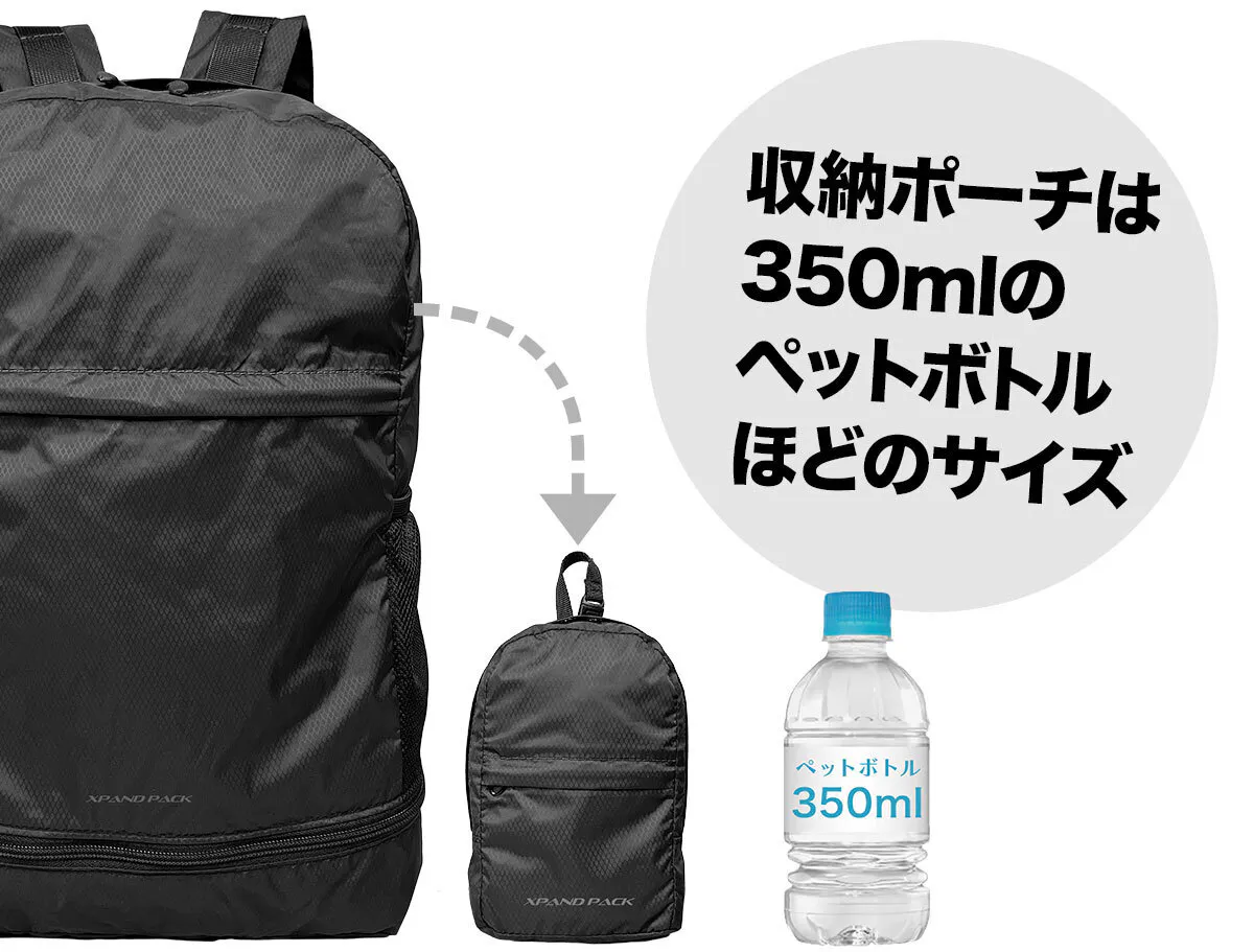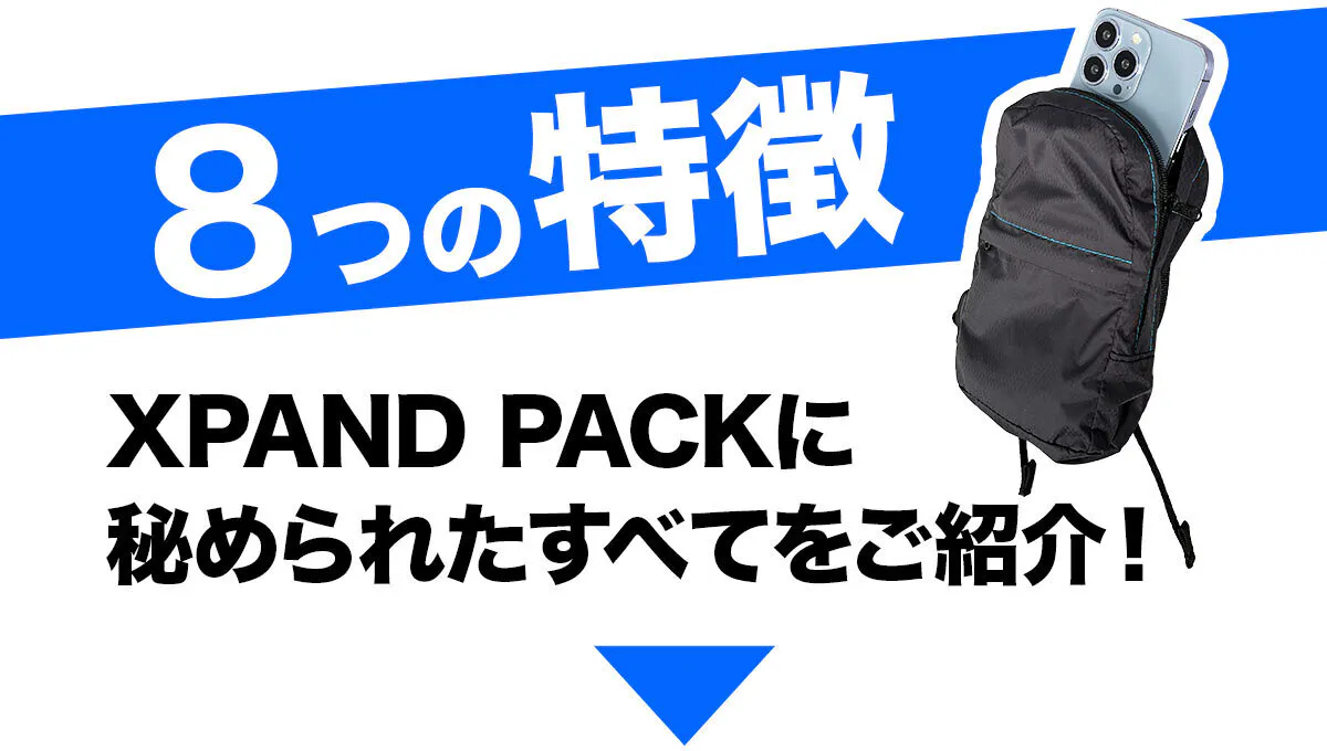 「XPAND PACK (エクスパンド パック)」は、手のひらサイズに折りたためるリュックで、どこにでも持ち運べる便利さが魅力です。