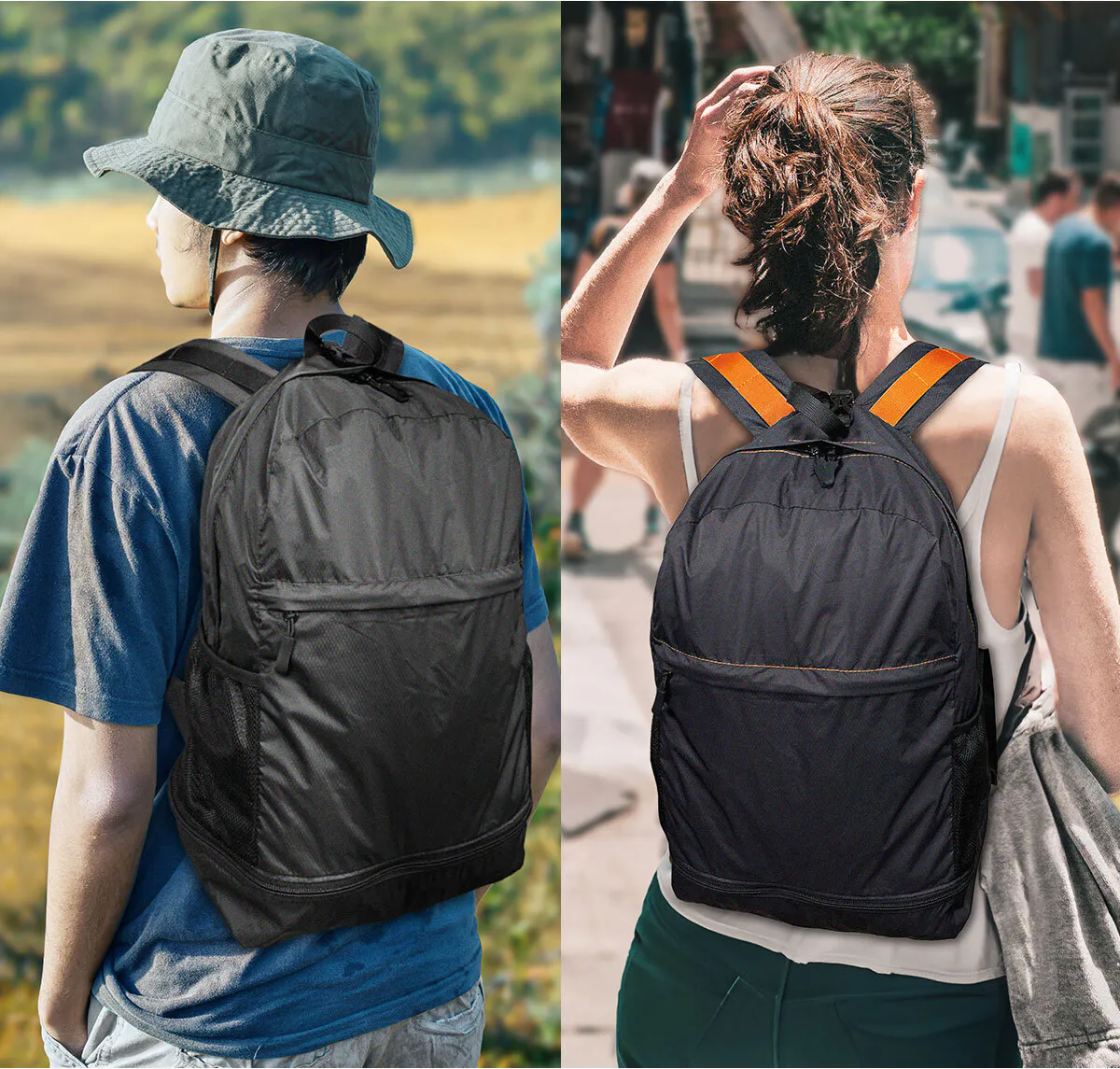 リュック本体と収納ポーチ合わせて213gという驚きの軽さを実現しました。バッグ自体が軽いので、アウトドアの道具や旅先で買い物が増えても快適です。