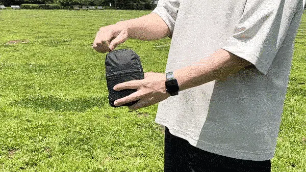 たたみ方はシンプルで簡単です。数回の手順であっという間に手のひらサイズに収まります。どんなときも持ち歩きたくなる携帯しやすさが魅力です。