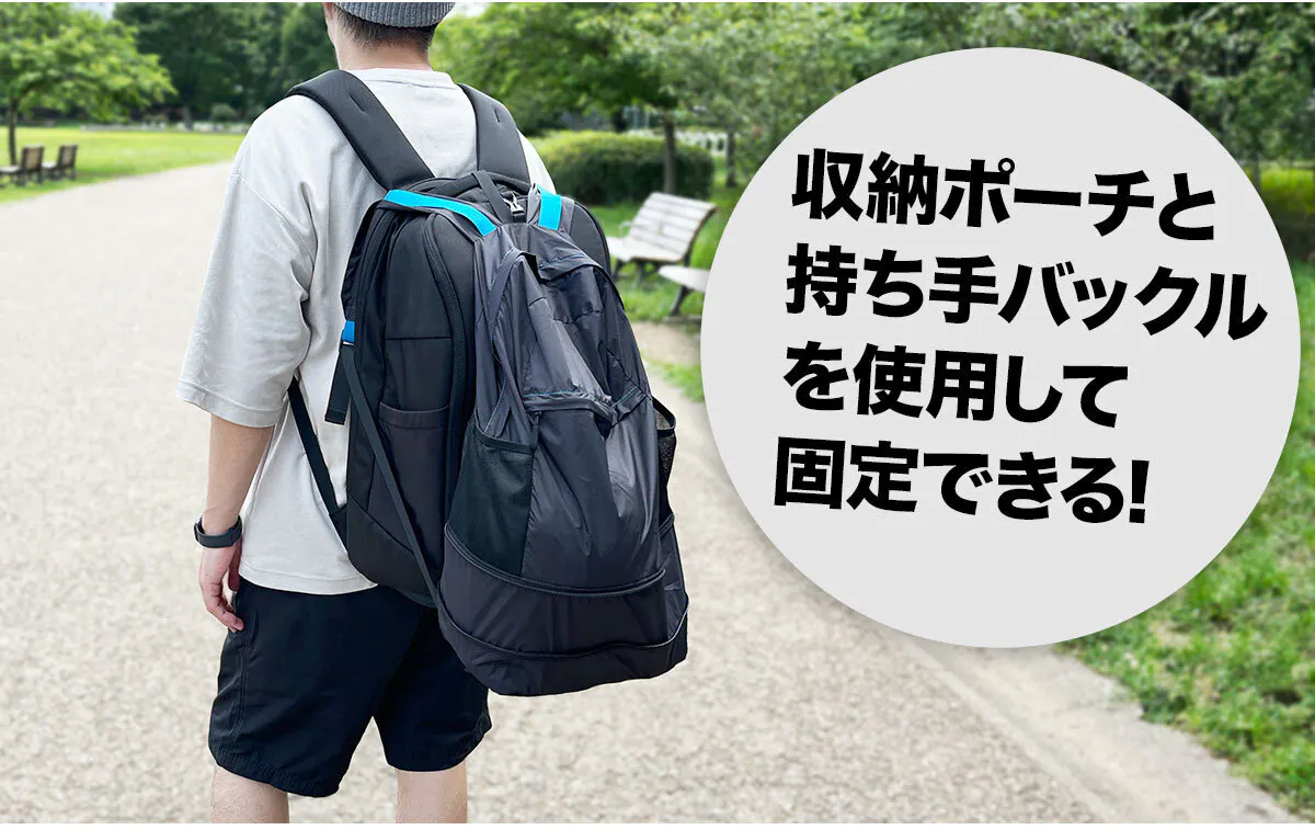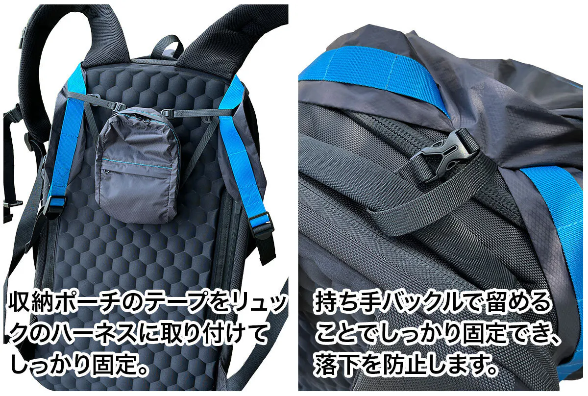 荷物が多いときのサブバッグとして使用する際に別のリュックに被せて装着することが可能です。又、撥水生地なので雨よけとしても機能します。