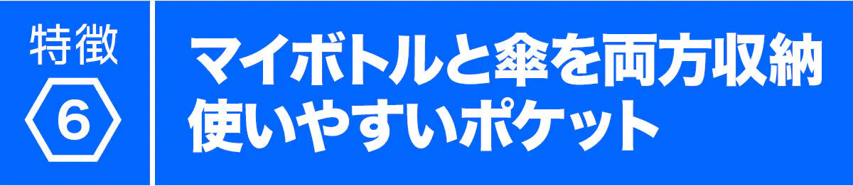 折りたたみ傘やペットボトルを両方収納できる仕様です。天候や出かける先に合わせて便利に使えます。