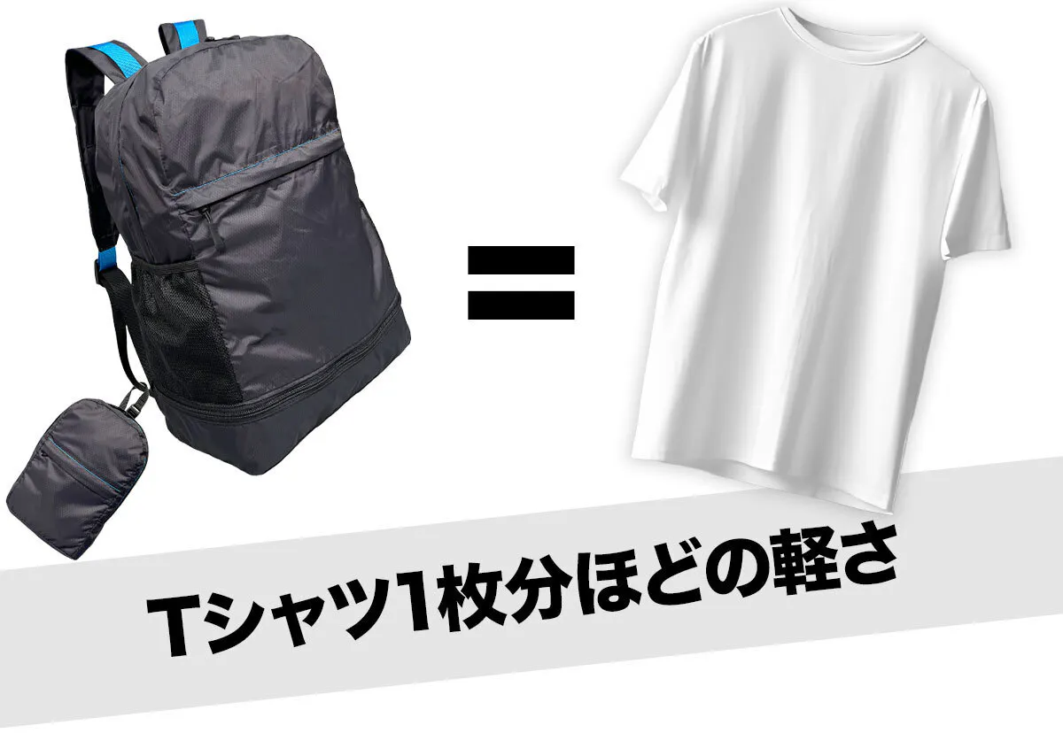 小さく折り畳めるからどこにでも携帯できる。機能満載の使いやすいリュックの登場です。