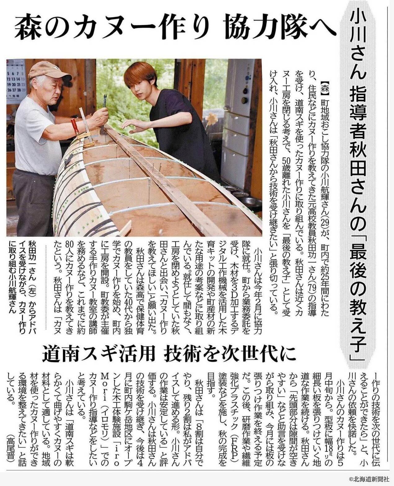 秋田先生は、森高校で保健体育の教員をしていた40代の頃から独学でカヌーを作り始め、町内に秋田カヌー工房を開設。町の教育委員会が主催する手作りカヌー教師を務めるなど、これまでに約80人の方々にカヌー作りを教えてこられました。