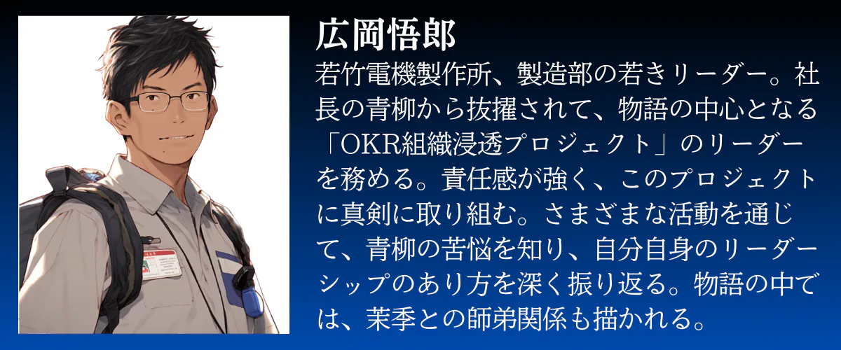 若竹社のリーダー、広岡が、組織の変革を牽引。彼の情熱と、組織開発コンサルタントの山口茉季のサポートで、ChatGPTの先進的な提案が組織の変革を加速させます。