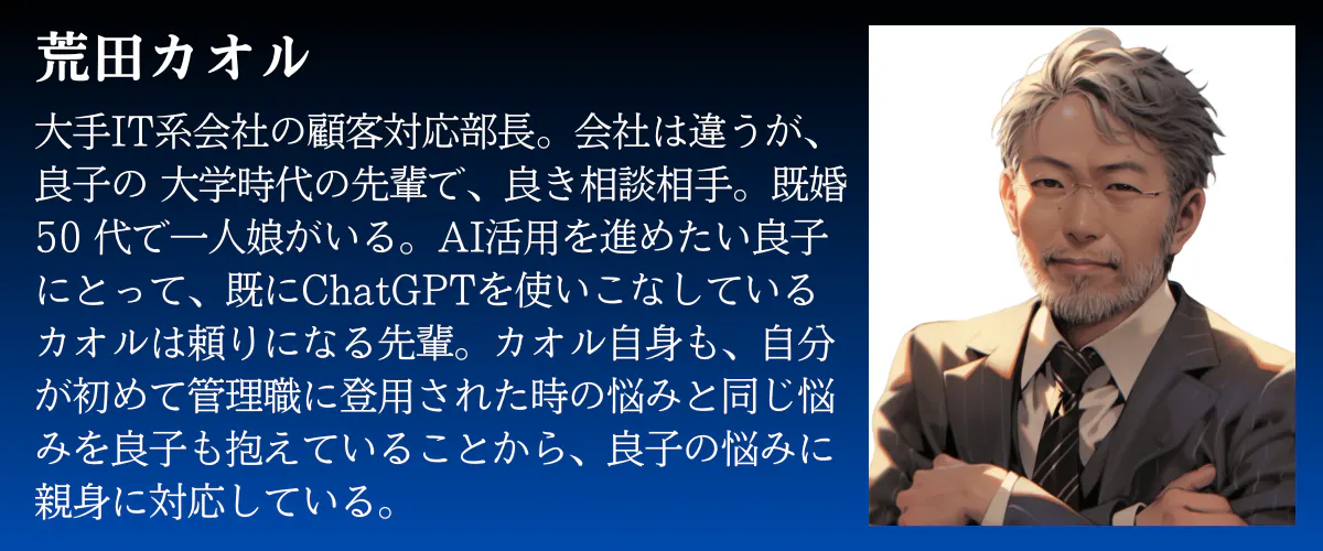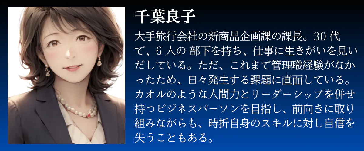 新米管理職、千葉良子が、日々の悩みを乗り越え、部下と共に成長する物語。AIの力を活用し、管理職としての新たな視点を獲得します。