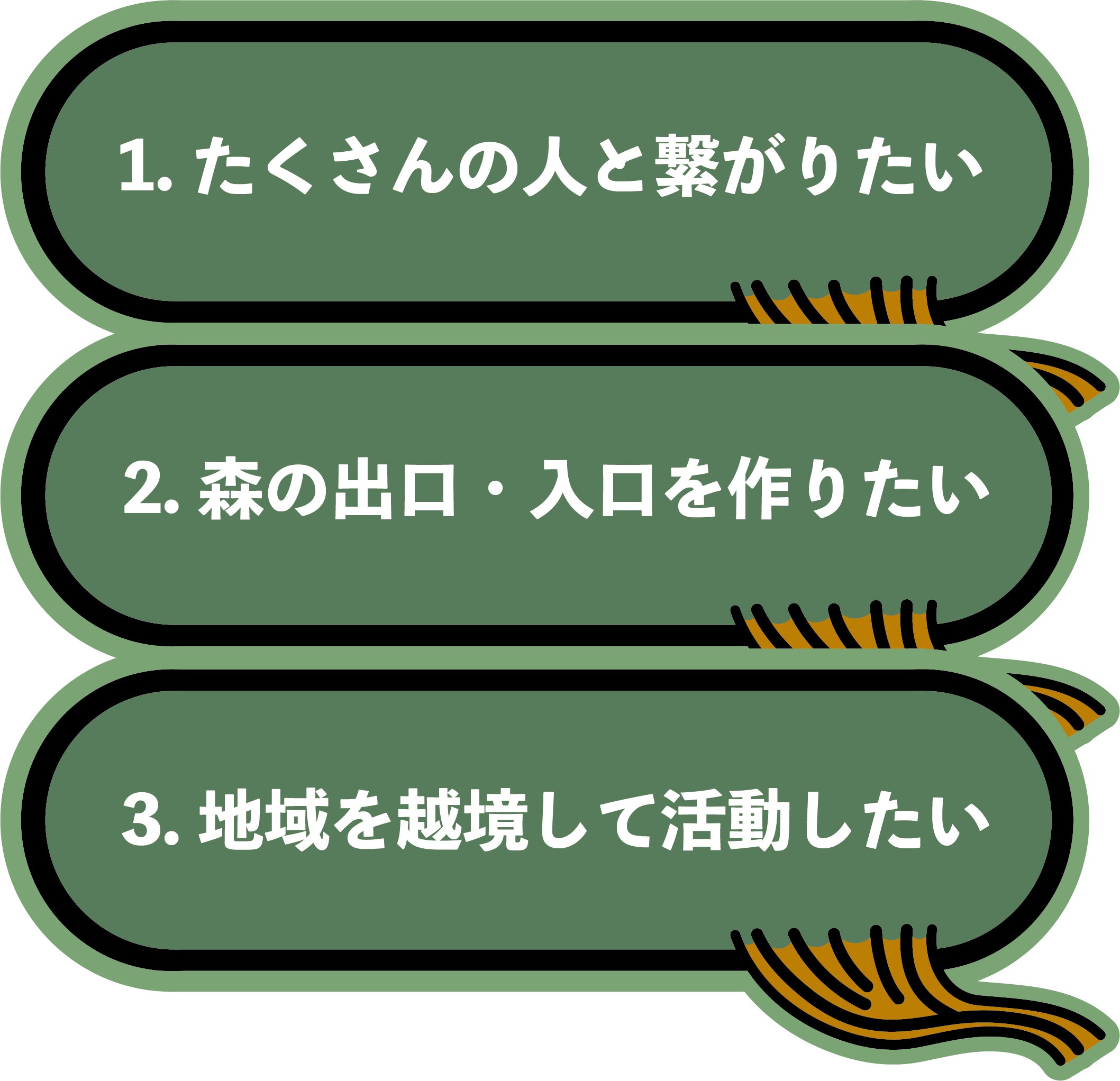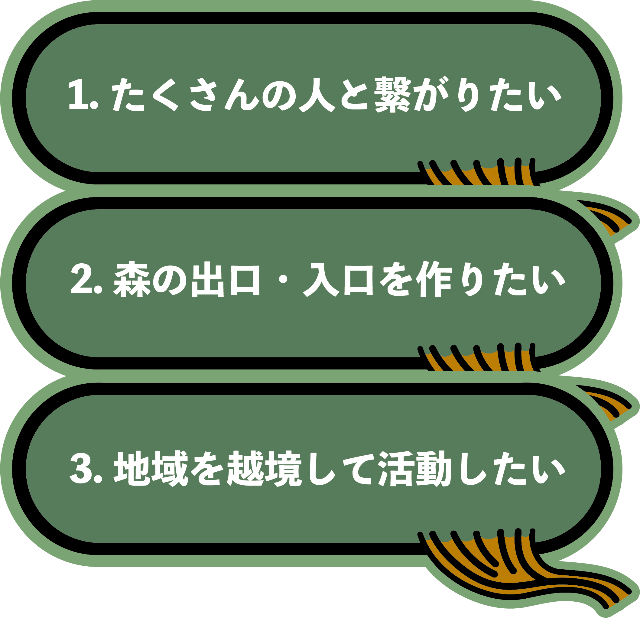 今回の展示ではより多くの人に来て頂き、森を通してたくさんの人と繋がりたいと考えています。新たな出会いを通して、森の新たな可能性が見つかるのではないかと想像します。大人から子どもまで多様な世代が、森を楽しく使うことを考えるきっかけになれば幸いです。