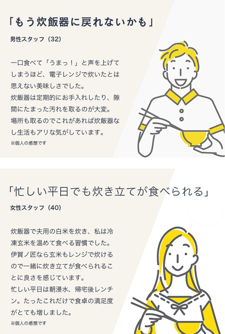 「私は柔らかめが好きだけど、家族は硬めが好き」という方や、「夫は白米派、私は玄米派」という方にも伊賀ノ匠をぜひ使っていただきたいと思っています。