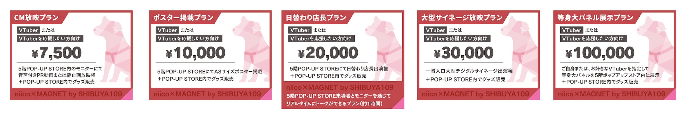 あなたの推しのVTuberをスクランブル交差点前のサイネージに掲載出来たり、POP-UP STORE内に広告映像を放映出来るプランもございます!