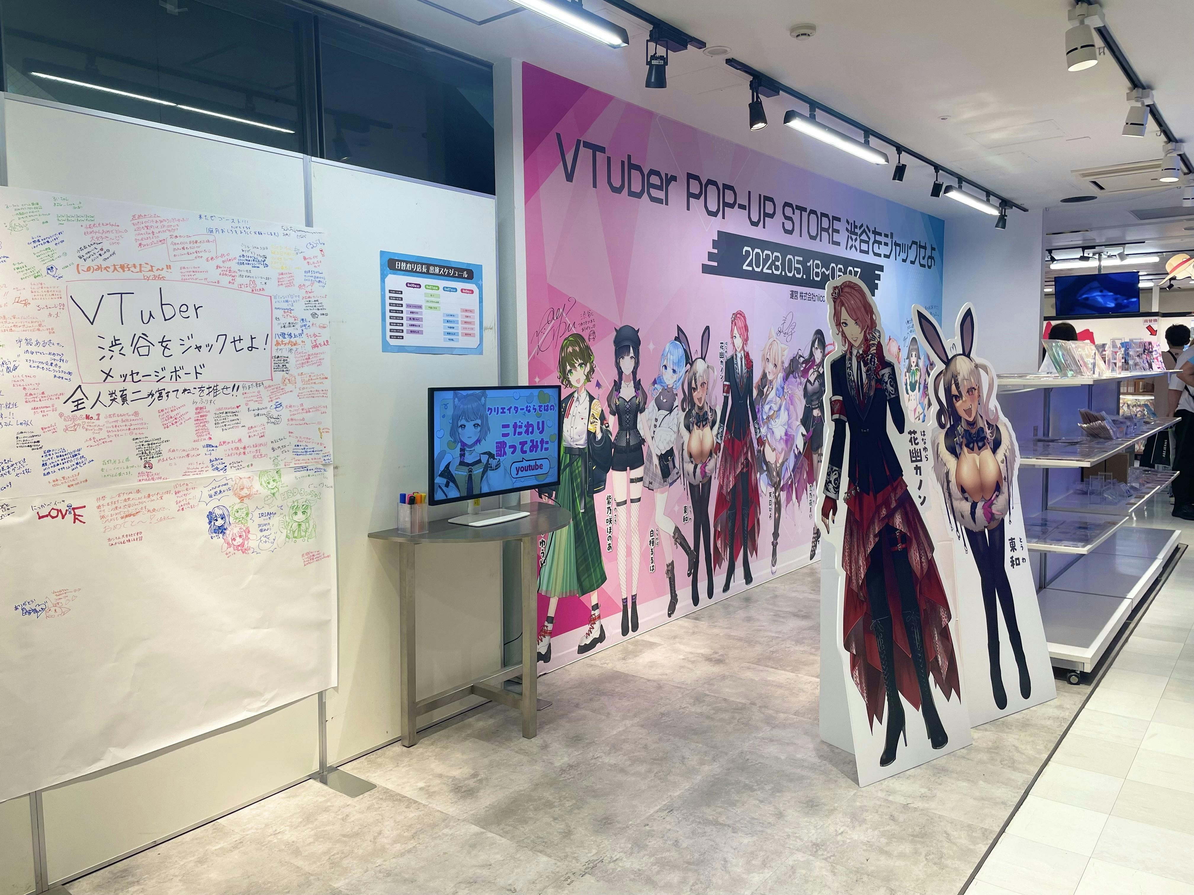 5階POP-UP STORE内のモニターにPR動画を流せたり、等身大パネルの展示、入口デジタルサイネージに出演出来るリターンもあります。その他もリターンがありますので詳細をご確認ください。ファンの方がご支援頂き、推しのVTuberを指名して掲載することも可能です(日替わり店長を除く)