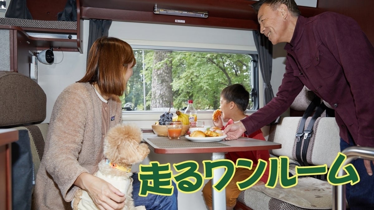 キャンピングカーは、走るワンルーム! キャンピングカーはベッド、キッチン、テーブル、トイレ、シャワーなど、家族全員が快適に過ごすことができるものが揃っています。キャンピングカーがあると、行ってみたいところへ気ままに旅行することができ、家族全員でその魅力を共有することができます。