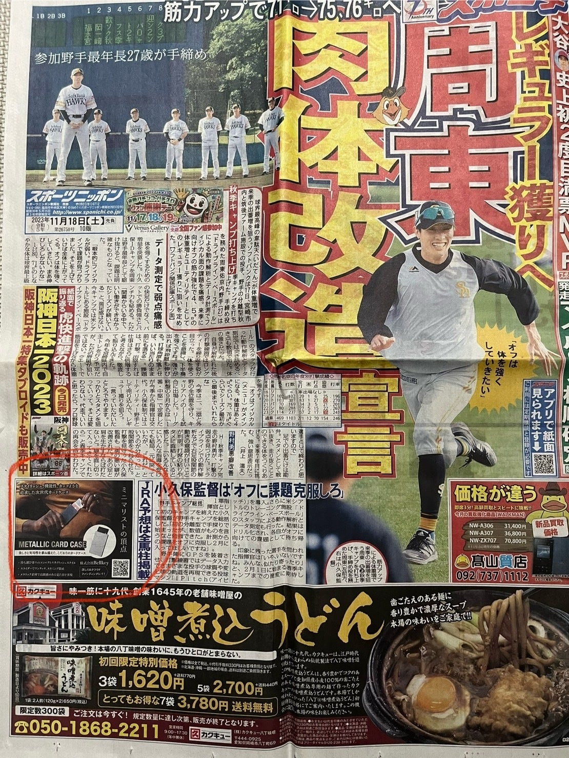 スポニチ新聞の表紙に掲載されました!!