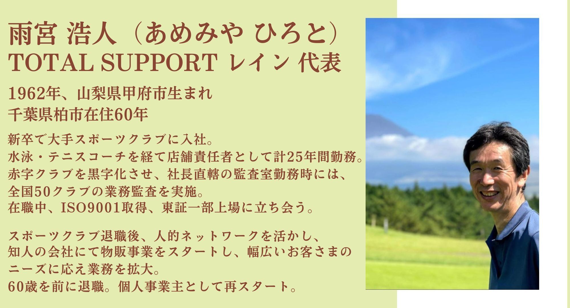 TOTAL SUPPORT レイン代表、雨宮浩人と申します。