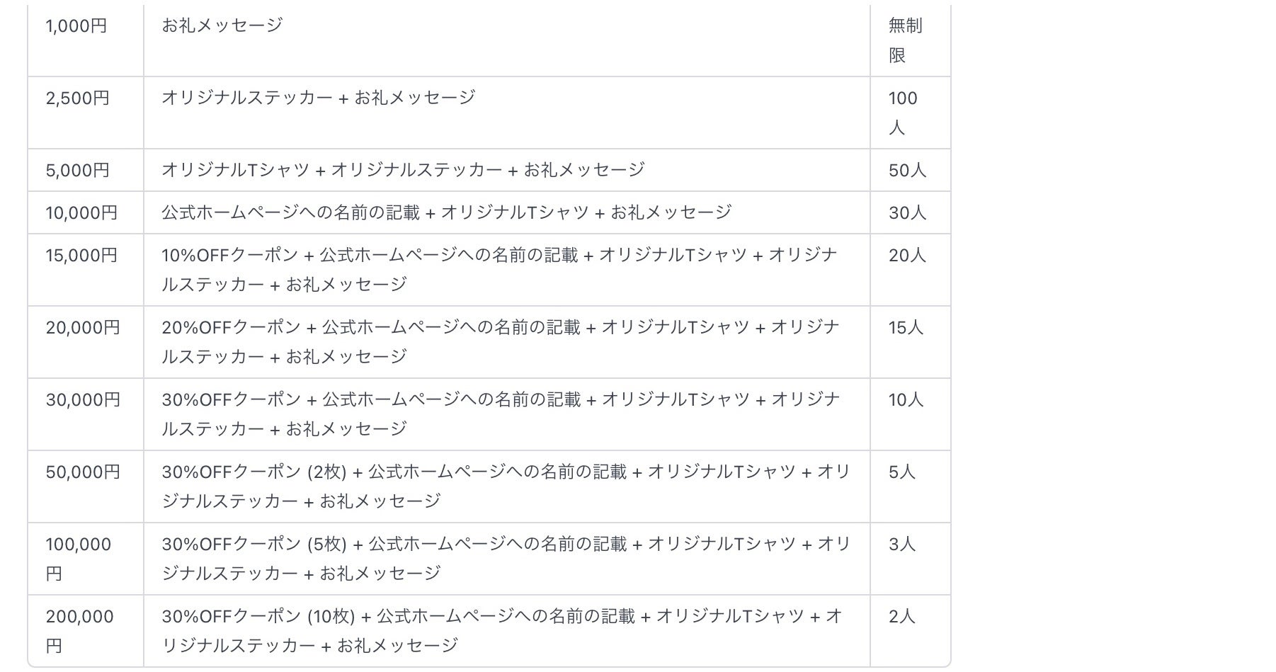 - 名前の公式ホームページ掲載: MasaFamを支える仲間として、支援者様の名前やユーザー名をホームページに記載します。