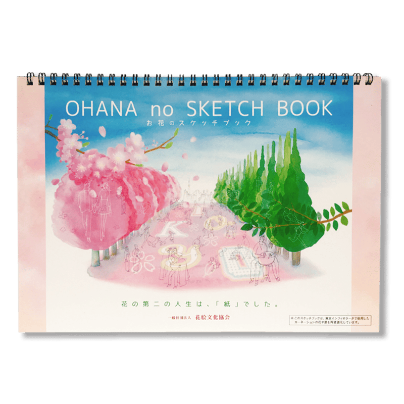 過去に私たちが関わった東京インフィオラータでは、使用した花茎がスケッチブックに生まれ変わり第2の人生を歩みます。出来上がったスケッチブックは支援学校の生徒の手にわたり、彼らが描いた絵が次のインフィオラータの題材になる。そんな循環が起きています。