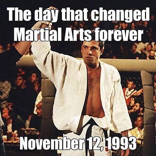 1993年11月、コロラド州デンバーにて、キックボクシング、空手、レスリング、総合格闘技、相撲など様々な格闘技の猛者を集め、体重の区分もなくまた、ほとんどの格闘技では反則である金的攻撃までも含む、まさに「何でもあり(=ポルトガル語のVALE TUDO)」の格闘技イベント、第一回UFC大会が開催され、突如として現れた、他の出場者に比べはるかに体重も体格も劣るブラジル出身の細身の体躯を持つホイス・グレイシーが「グレイシー柔術」を駆使しほぼ無傷で優勝しました。その日から世界中に総合格闘技の歴史が始まったといわれています。その後引き続き第2回、第4回大会でもトーナメントで優勝を重ね、グレイシー柔術の名声と実力を世に知らしめることで「ゴッドファーザーオブMMA」との異名を得ています。