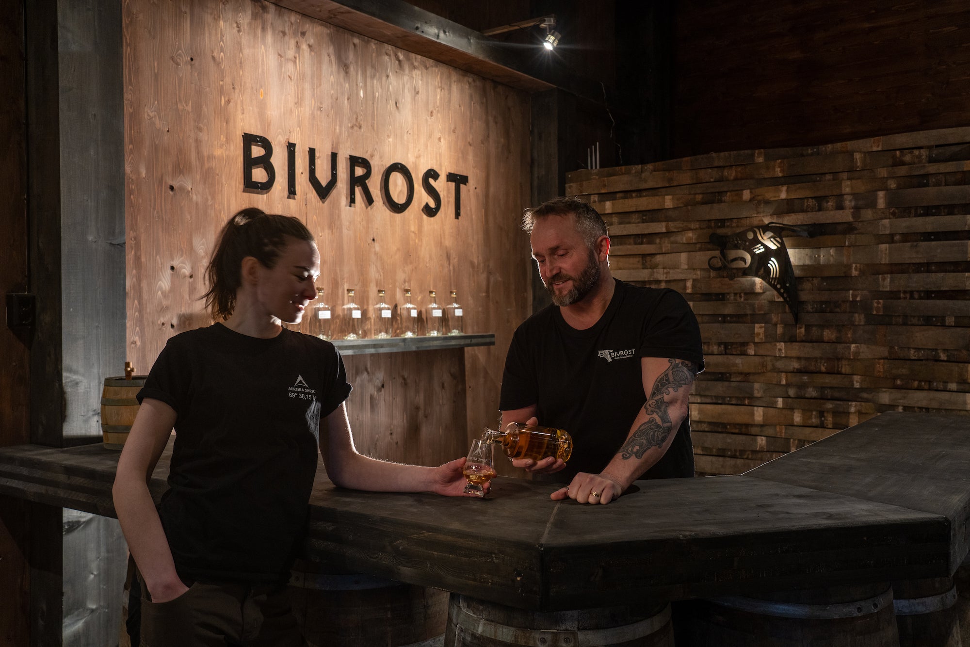 地元北極圏ならではの特徴を生かした他に類を見ない同蒸溜所が作るお酒のブランド名は、ヴァイキング語で「揺れる虹の橋=オーロラ」の意味を持つ「BIVROST(ビヴロスト)」と名付けられた。その昔ヴァイキング達は、BIVROST(ビヴロスト)が神々しい黄金に輝く神々の国「アスガード」と人間の住む世界「ミッドガード」をつなぐ魔法の橋だと考えていたそうだ。