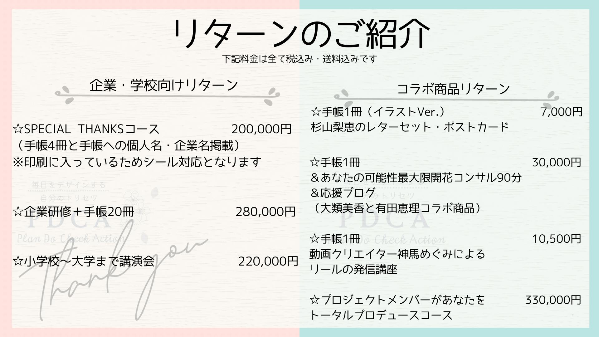 会社の皆様へ、新年会で従業員の皆様にプレゼントできる手帳10冊コースもリターンに仲間入りしました!