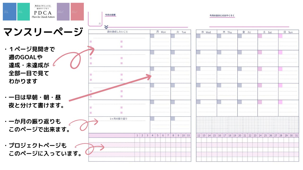 シンプルにPDCAを回し、目標達成していくためのものだけを厳選してページに入れているため