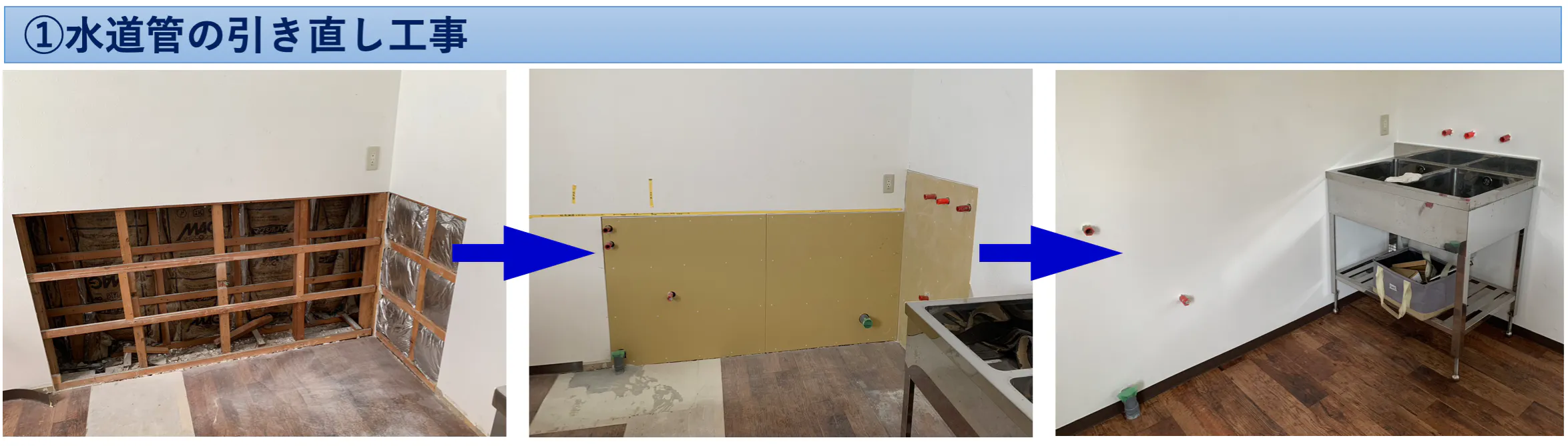 - ①水道管の引き直し工事