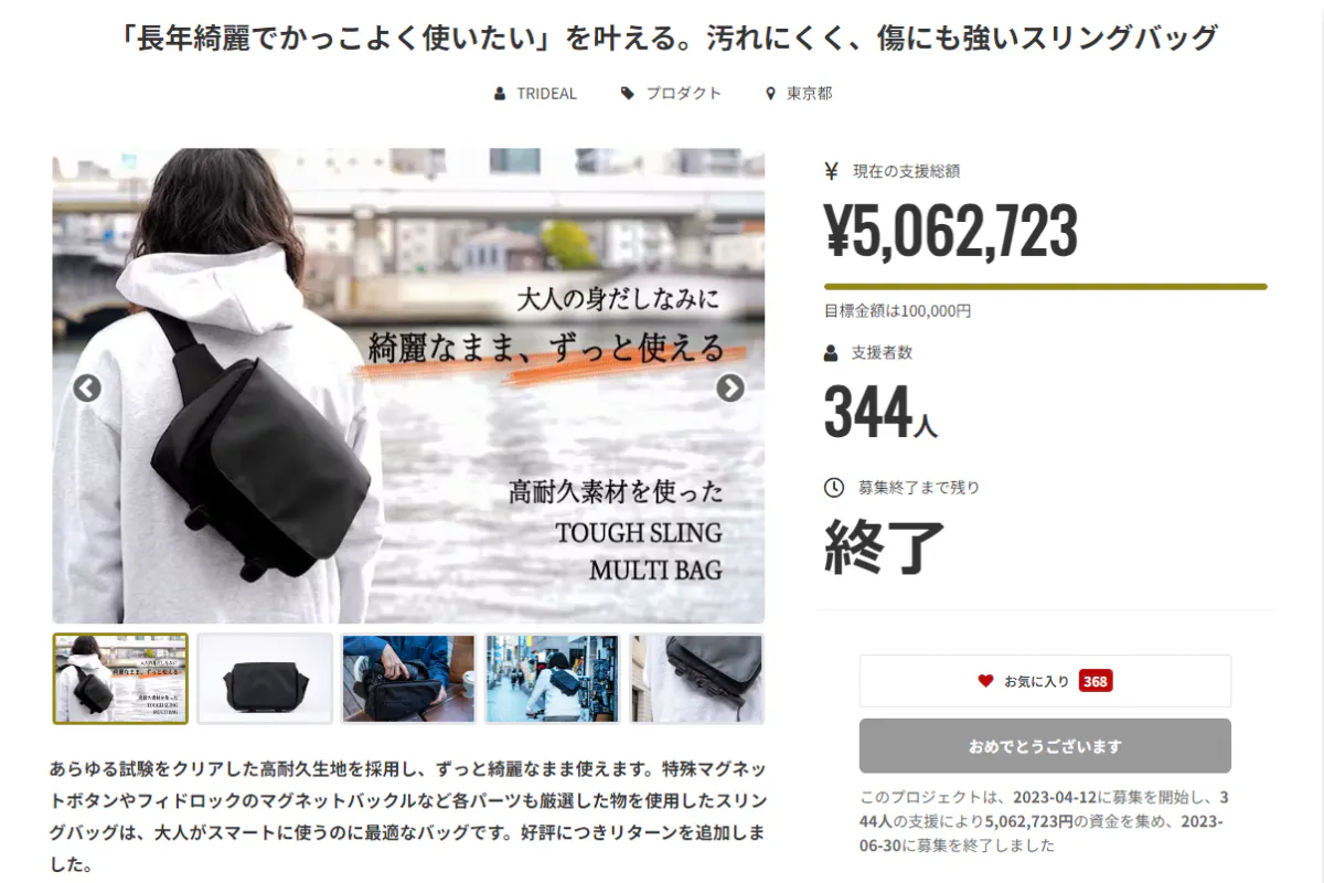 【セール情報】人気のスリングバッグがCAMPFIRE限定セールを実施!