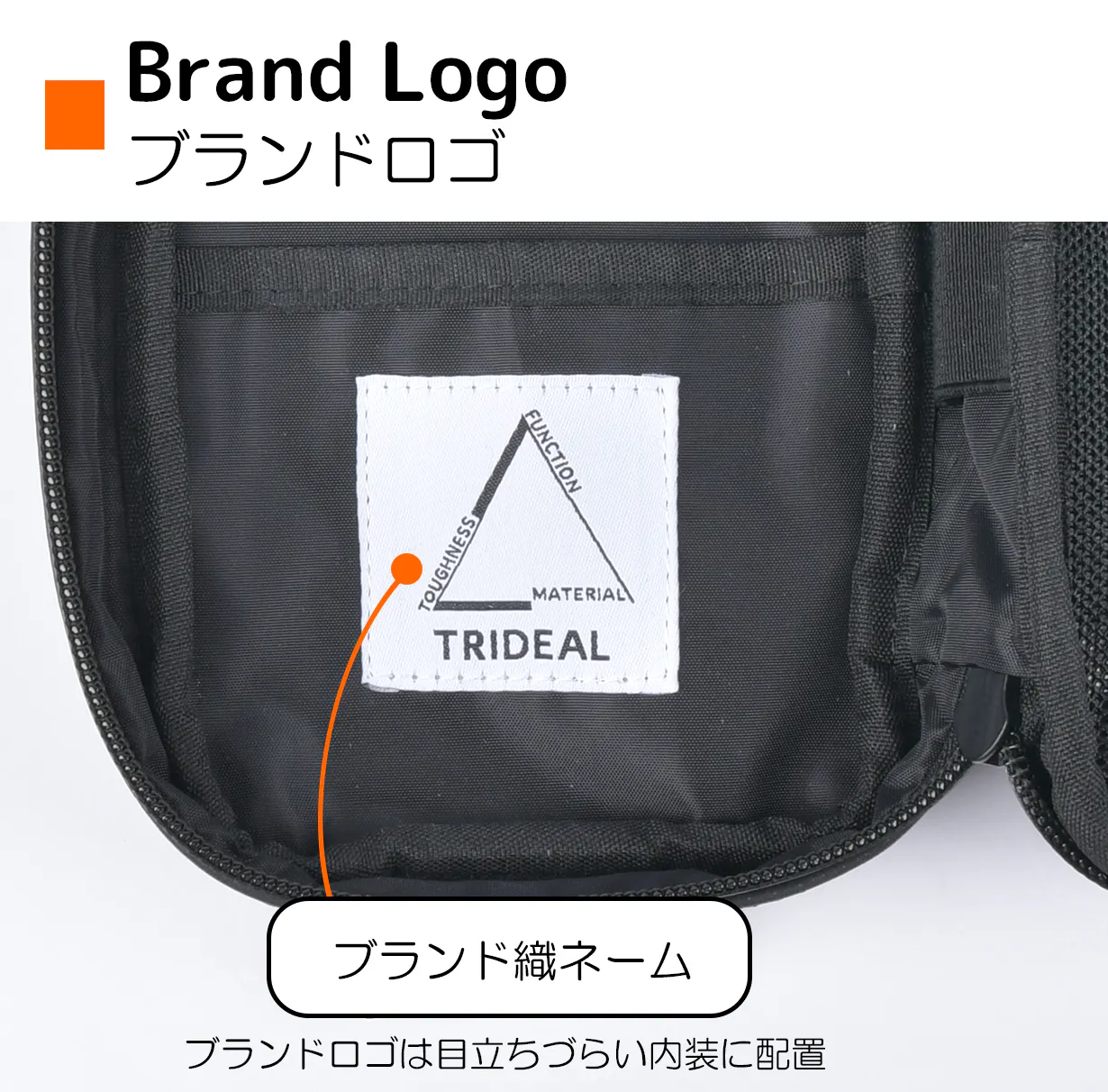 小物を収納する為のファスナーポケットと、2段の差し込み式のポケットも配置しています。