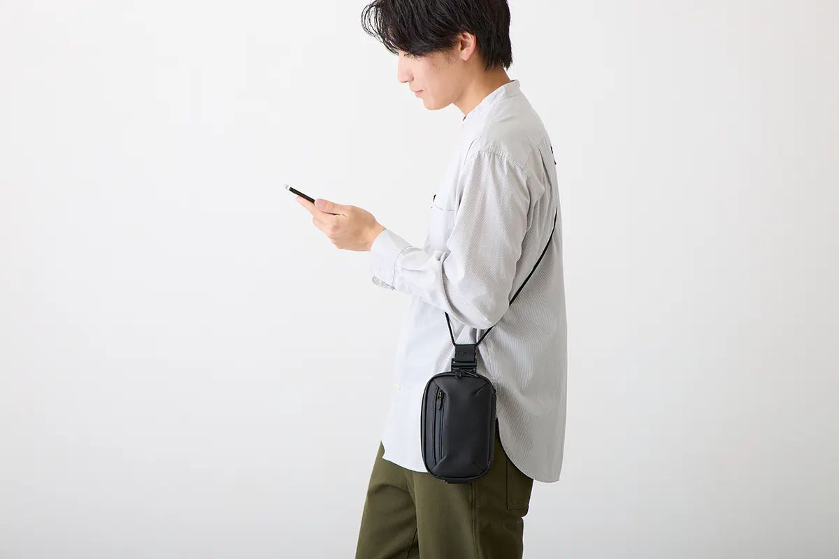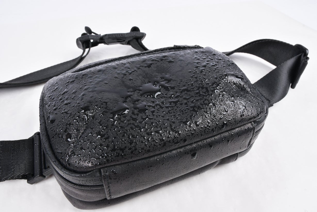 コンパクトサイズのミニバッグに収納力や機能性を持たせることを追求し、今回のウォータープルーフレザーミニバッグが完成しました。