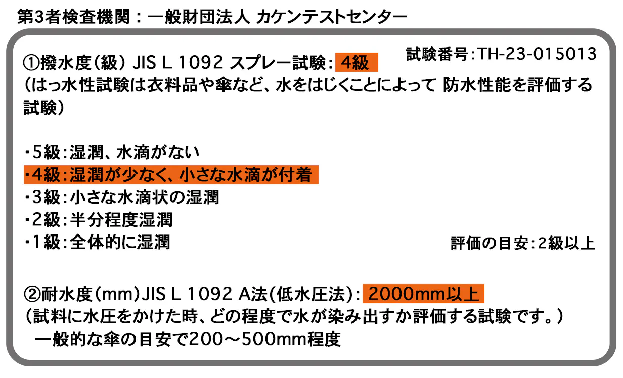 縫い目などから水が染みこむ可能性が有ります。