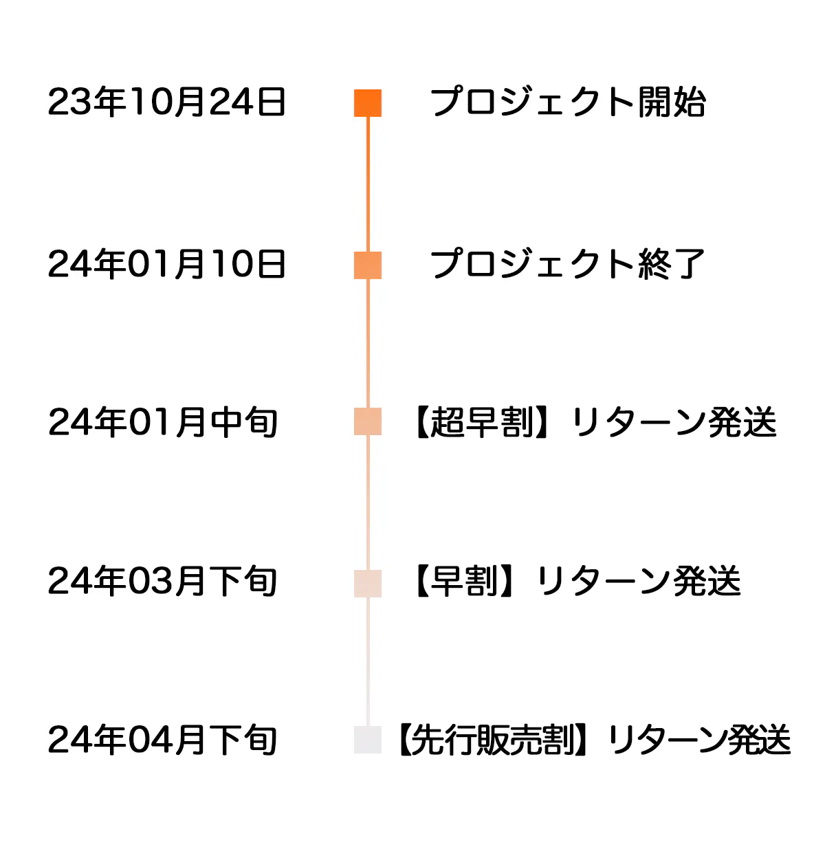 ●引渡し時期: 各リターン詳細に記載の発送予定月を引き渡し時期とします。但し、開発・生産状況によって遅れが生じる場合がありますのでその際は当プロジェクトページ内の「活動報告」または購入者へのメール等で連絡します。