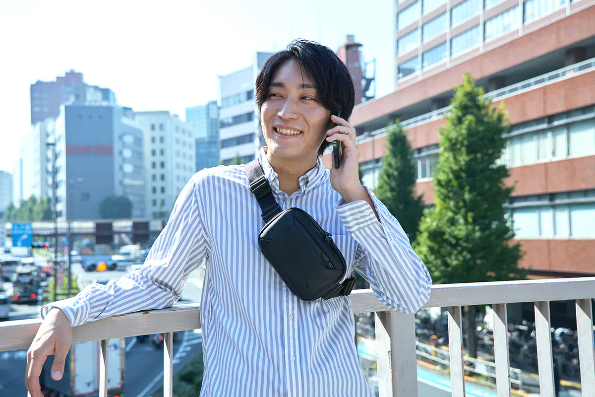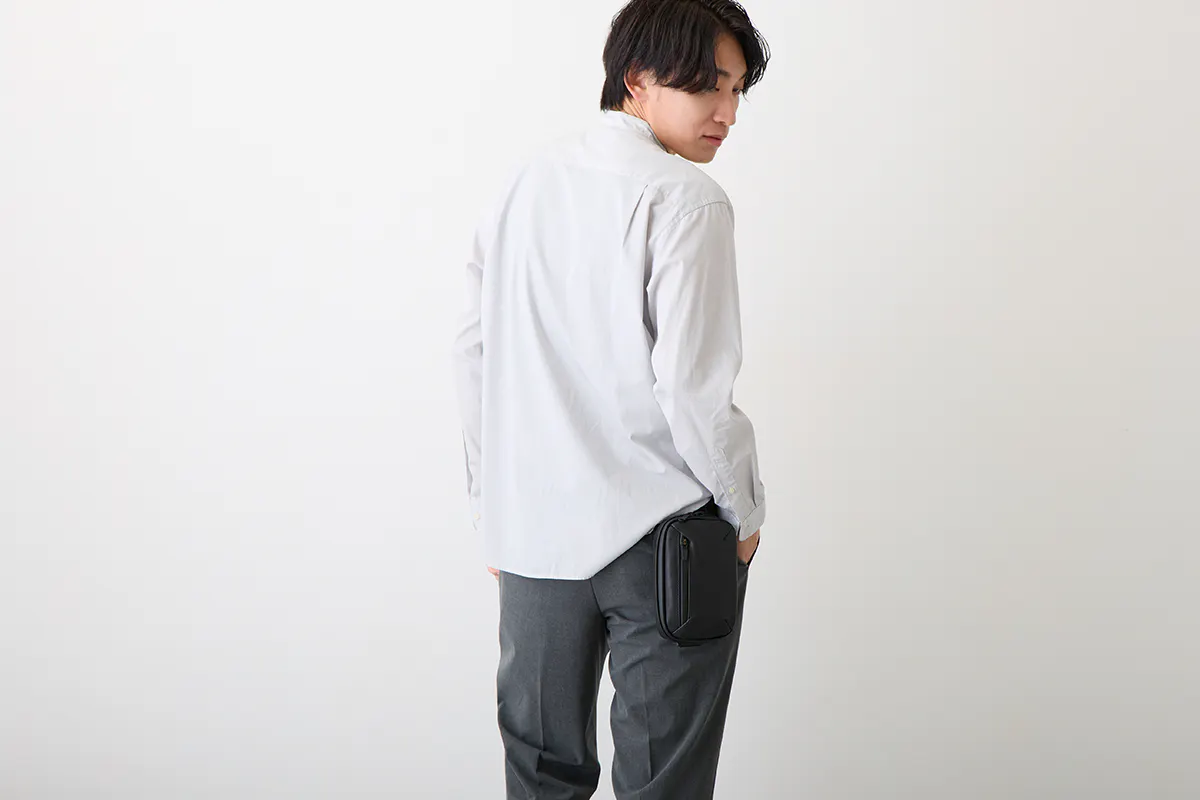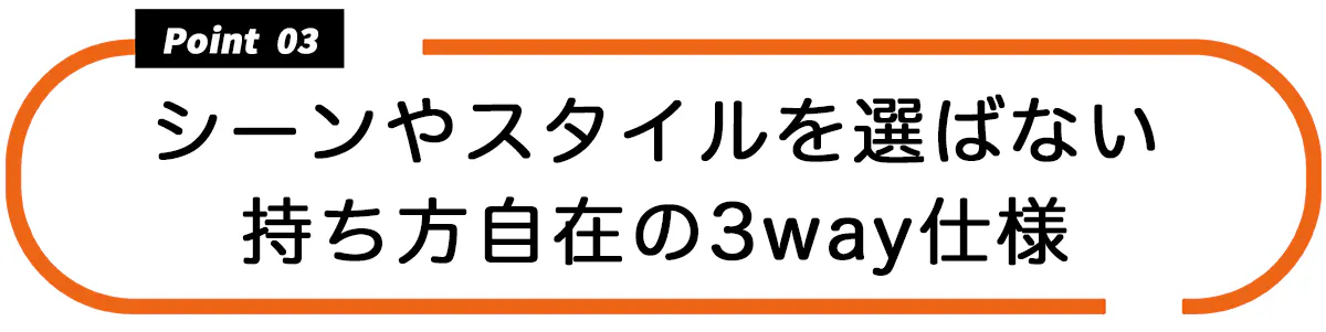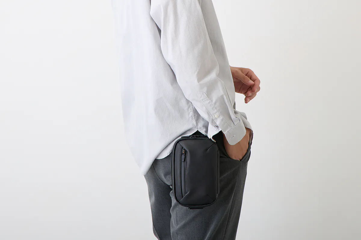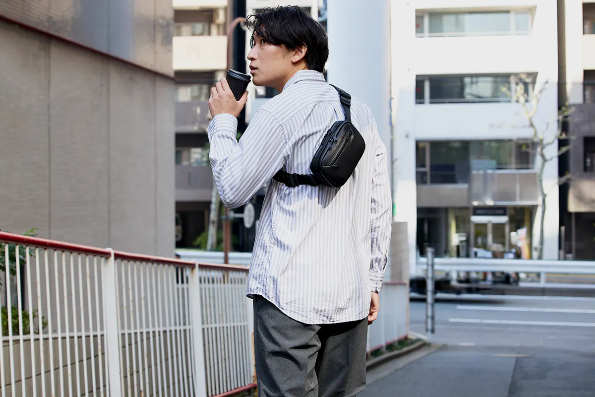 バッグ本体のミニマルなデザインと、持ち方を変えられる機能が相まって、シーンやスタイルを選ばずに使って頂けます。