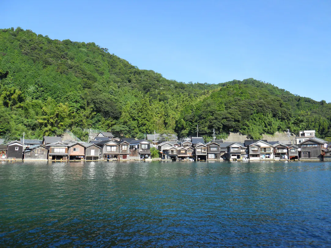 京都府北部の丹後半島の北東部に位置し、伊根湾に沿って”舟屋”が立ち並ぶ伊根浦の町並みは重要伝統的建造物群保存地区に選定されています。ぐるりと山と伊根湾に囲まれた港町です。京都市からは車で約2時間、公共交通機関では約3時間の場所に位置しています。