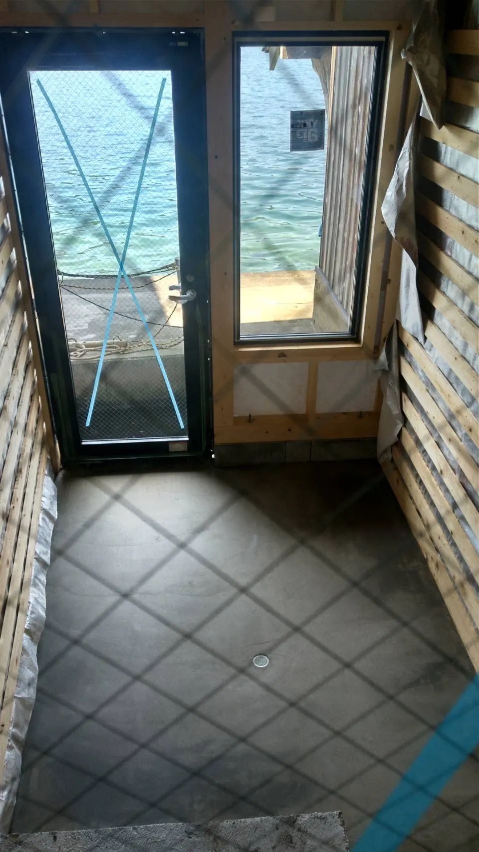 左:サウナ室造設予定地(奥に扉があり脱衣所とつながっています) 右:舟屋1階の船格納庫
