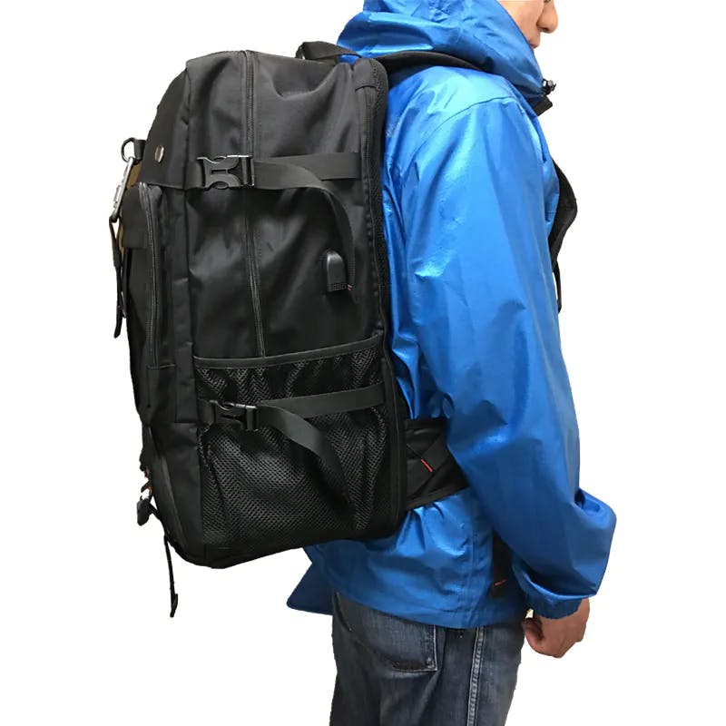 スリムボディから拡張機能で大容量リュックバッグに大変身!