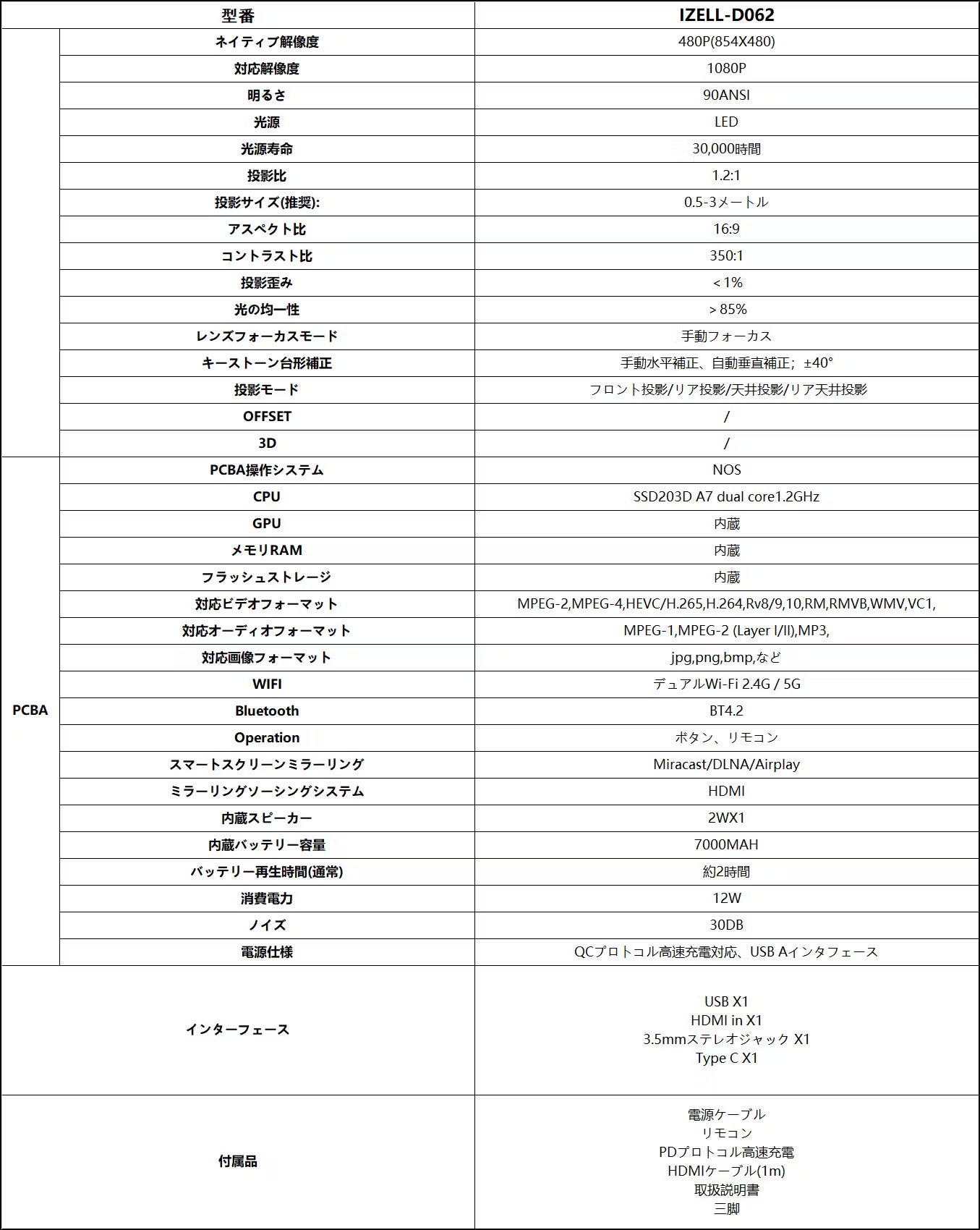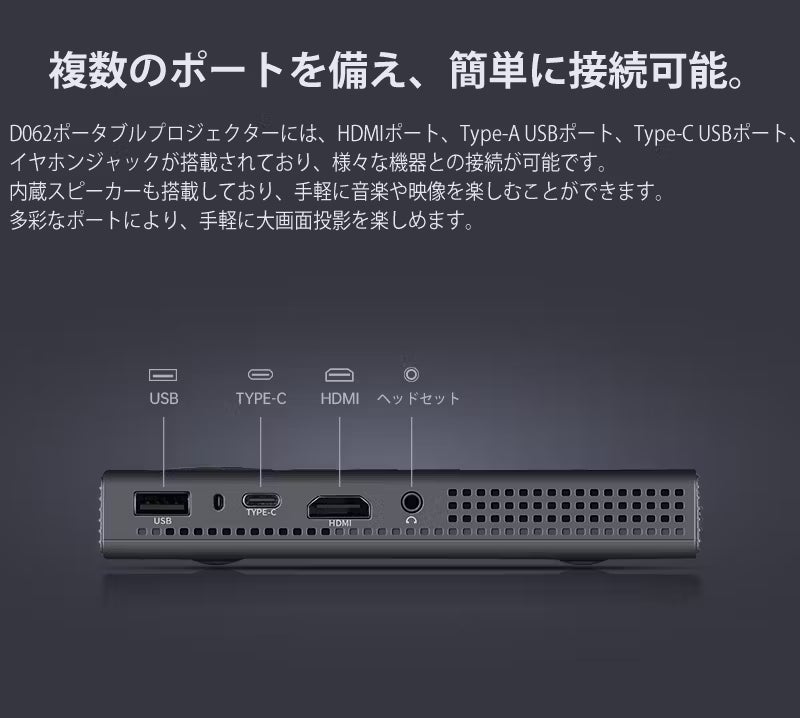IZELL-D062は、持ち運び可能な高性能プロジェクターで、映画やスポーツ観戦、ゲームの楽しみをいつでもどこでも大画面で体験できます。