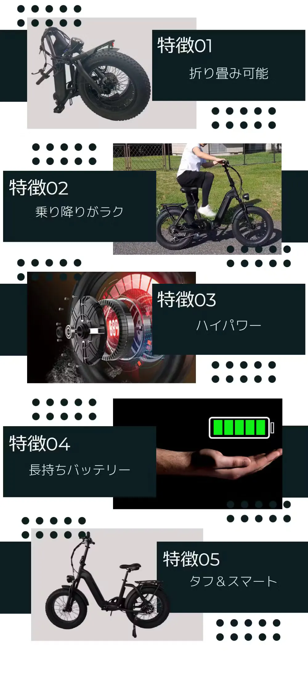 5.軽量かつ頑丈:軽量で強靭な20インチのアルミニウム合金フレームを採用し、100%マットカラーでスタイリッシュな見た目を実現。