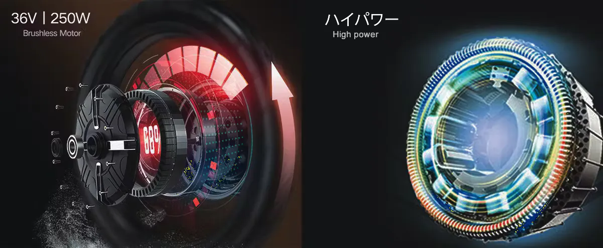 AWB02は、36V 250Wのリアハブモーターを搭載しています。