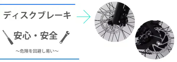 安全性と快適性を重視→ 前後ディスクブレーキやシマノ7速ギアなど、走行中の安全性と快適性を高める機能が搭載されています。