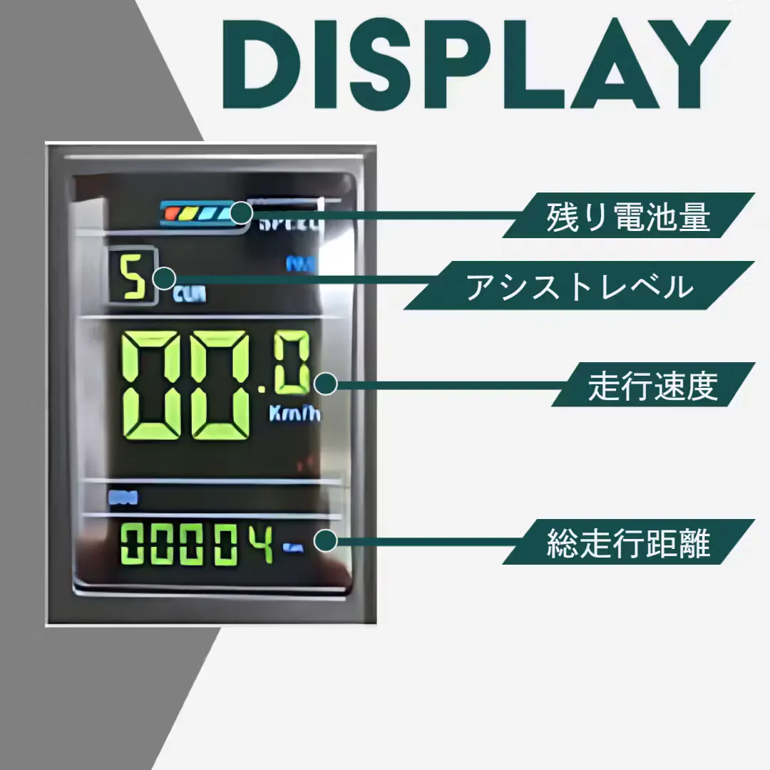 8.見やすいモニター:36VカラーLCDディスプレイで、走行情報がひと目でわかる。