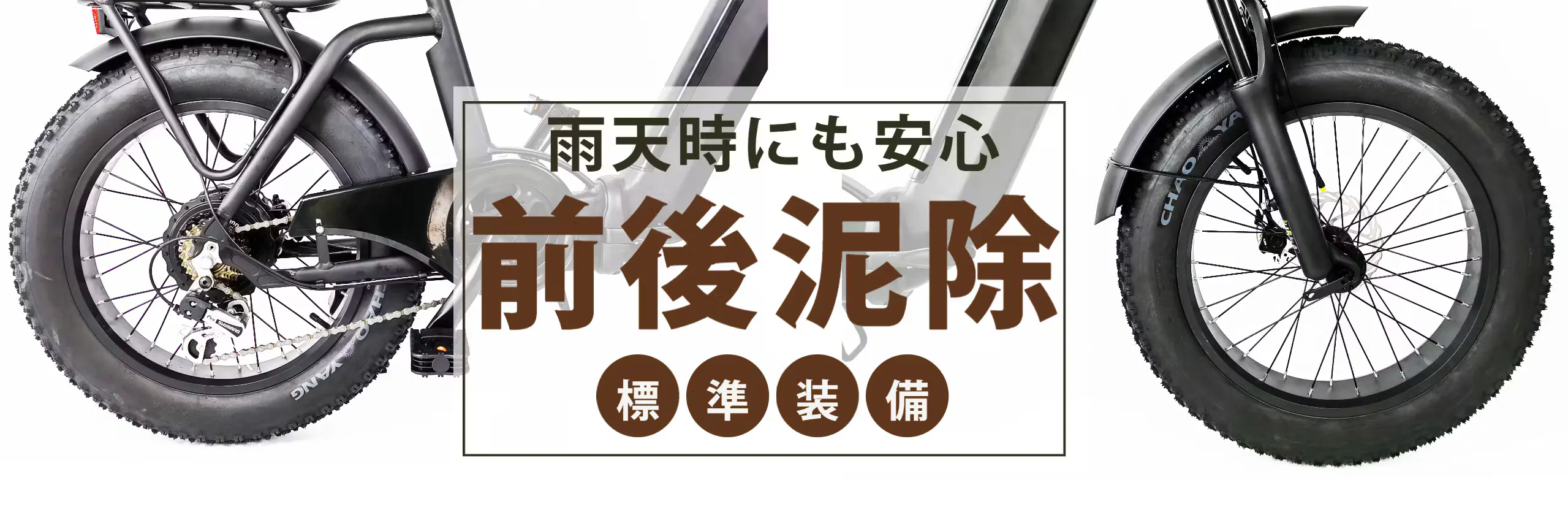 前後にフェンダーが装備されており、雨天時にはスプラッシュを抑えることができます。視界が確保され、より安全な走行を実現します。