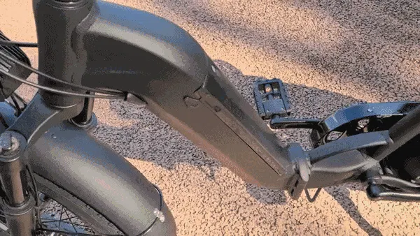 4.長時間の走行:バッテリーはフレームインで36V 10Ahの大容量バッテリーを内蔵し、充電1回で長距離走行が可能。