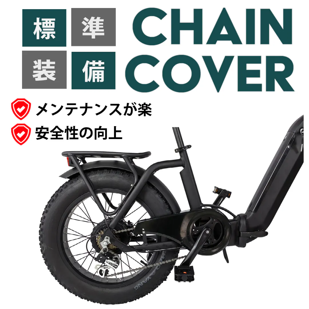 9.チェーンカバー付き:プラスチック製のチェーンカバー搭載。