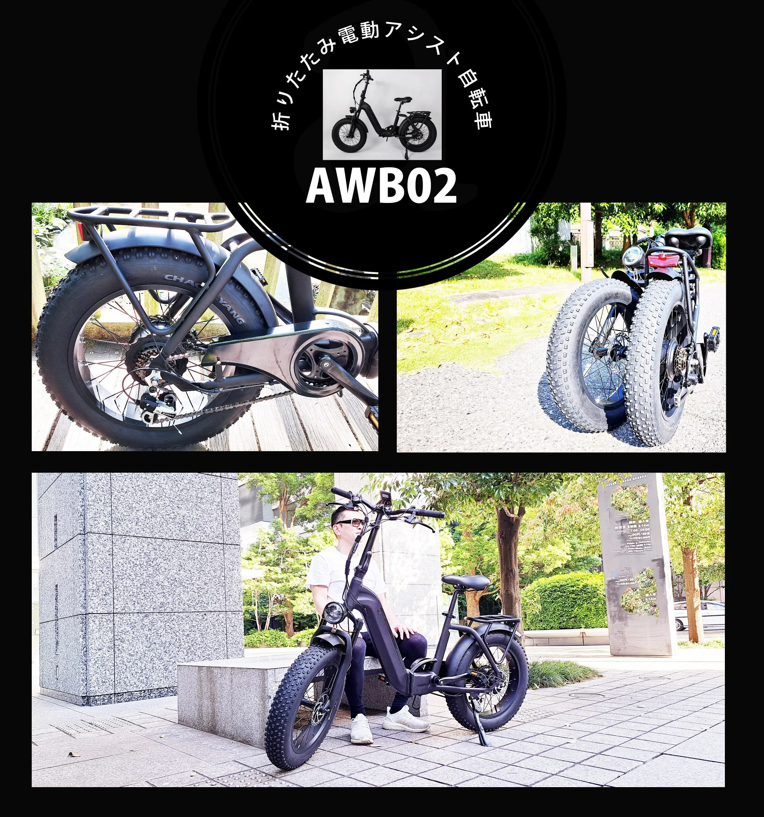 折りたたみ可能なファットバイク!極太タイヤで超パワフル◎電動自転車AWB02