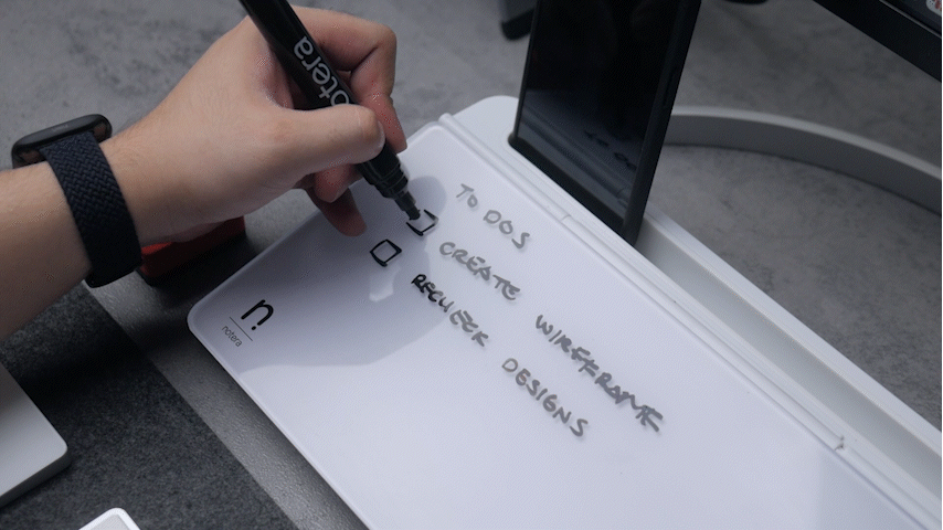notera Wedge Liteは1日のタスクや思いついたアイデアを「メモりたい」と思った瞬間にボードに書くことができます。常に目に入る位置に置いておけるため、自分の思考をボードに可視化できます。