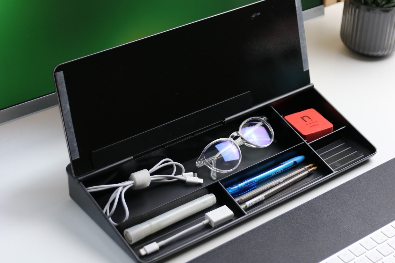 モニターとキーボードの間に置いて使用し、仕事中のタスクやアイデアを「サッと」メモすることができます。