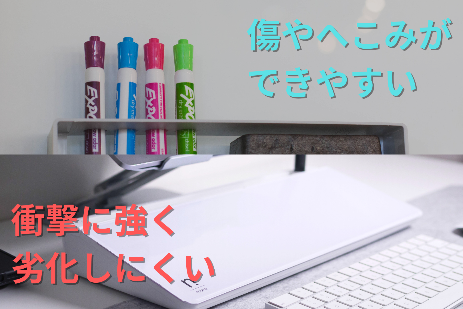 ツルツルした表面に加えて、耐久性が高いのも強化ガラス製ホワイトボードの書きやすさと言えます。