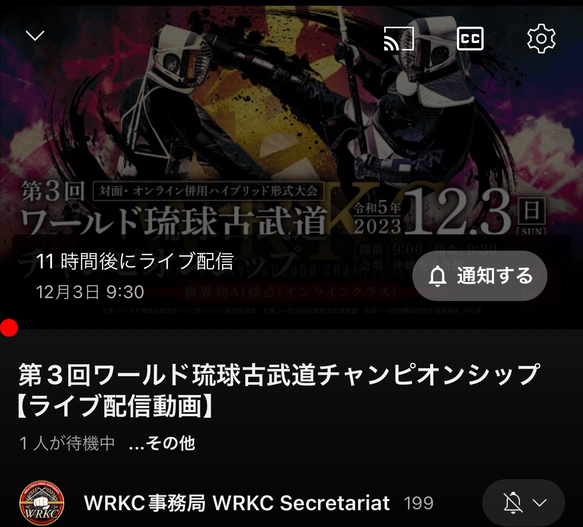 2023/12/02 22:16明日9時30分開会式より、第3回ワールド琉球古武道チャンピオンシップのLive配信を行います!来場出来ない方はご覧ください!https://www.youtube.com/live/UtYIAolXWag?si=3ApFSyLXyX6I6r-V もっと見る終了!106%達成!ご支援ありがとうございました!