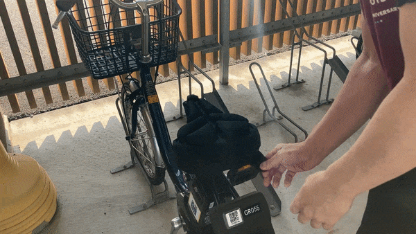 レンタルサイクルに取り付けてみましたが、一瞬で取り付けられますよ。