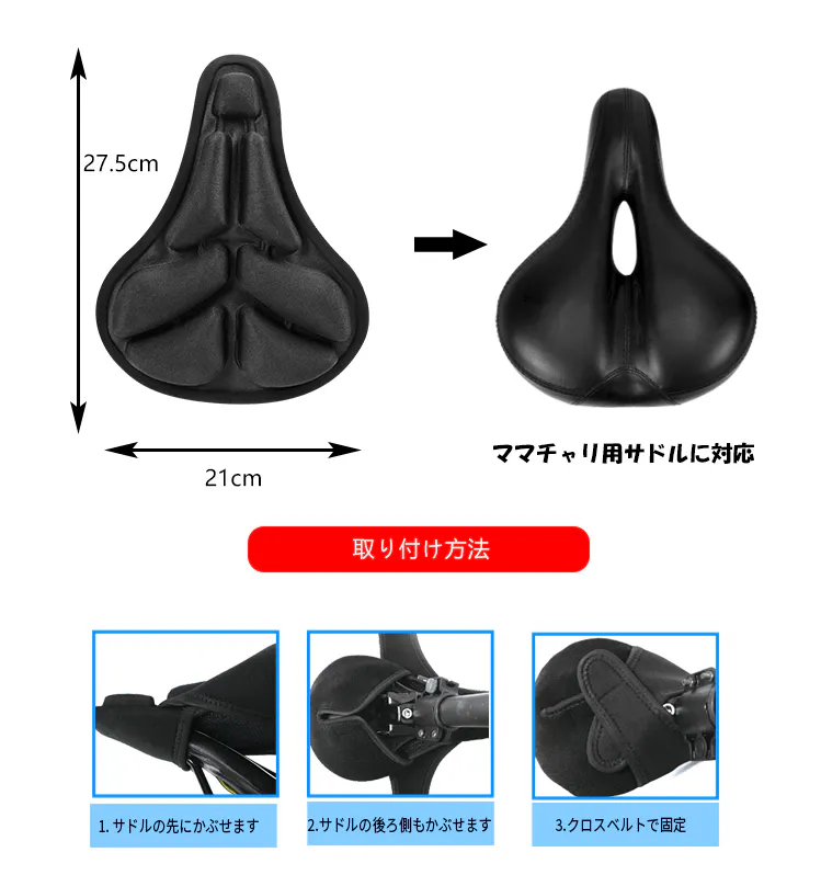 今回の通勤快尻は、ママチャリ、シティサイクルとかの一般的なサドルの大きさにピッタリのサイズになってます!