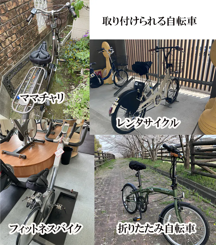 A) ママチャリ、レンタサイクル、フィットネスバイク、折りたたみ自転車、一般的な自転車に使えますが、必ずお使いのサドルのサイズを測ってから購入してください。